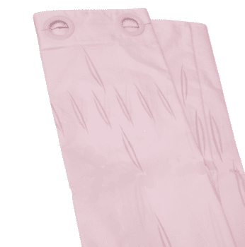 Venta de cortina de baño de color rosa claro con dibujos ovalados geométricos en rosa más fuerte. Sistema ollaos mágicos, click clack, no requiere quitar la barra.